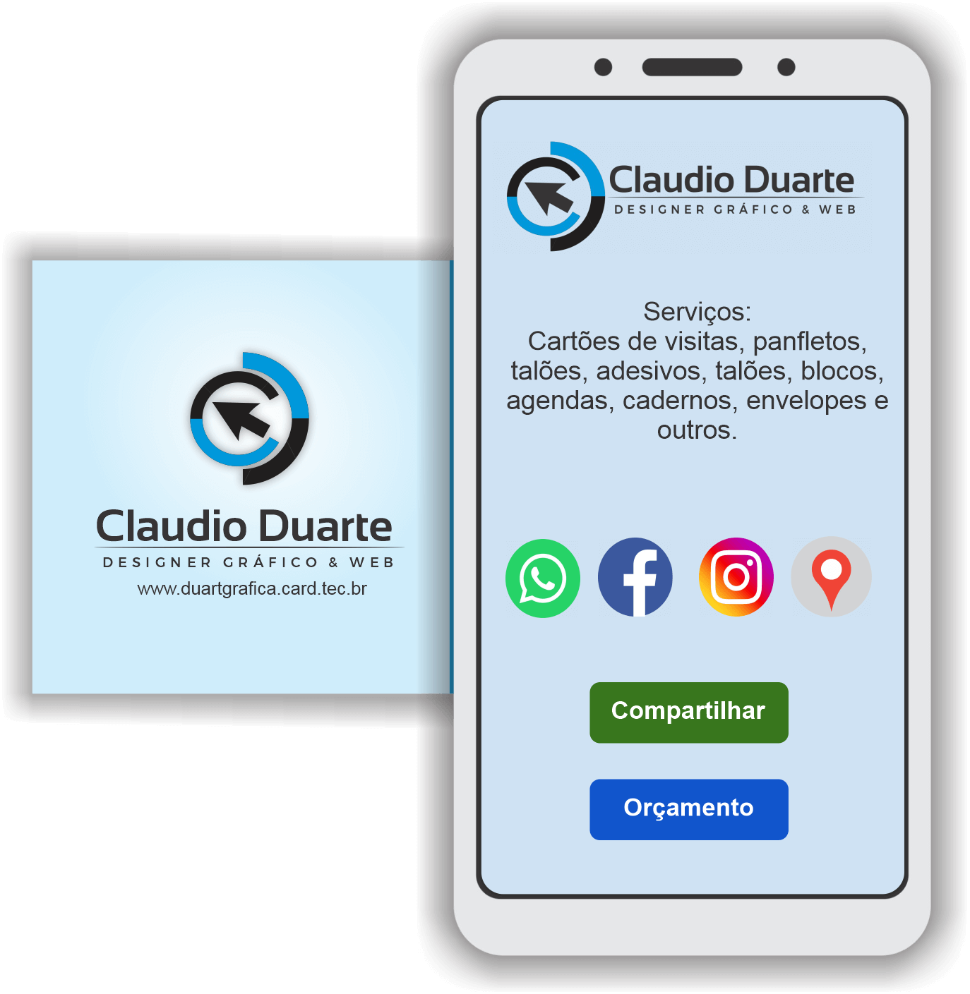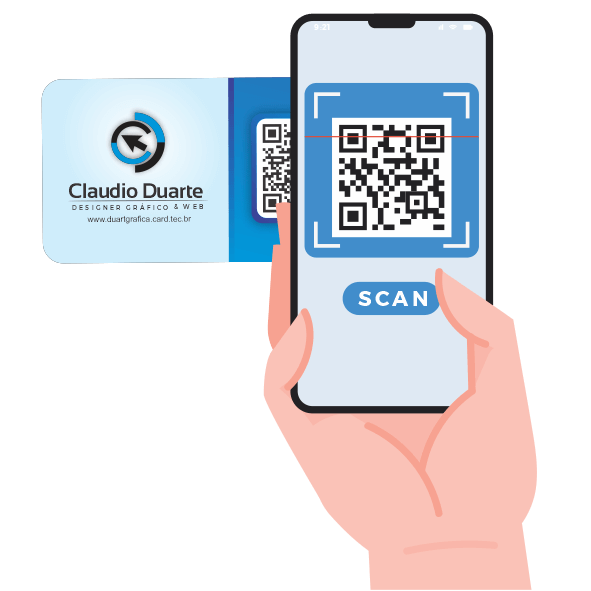 O cliente aponta o celular para o seu QRCode impressão em um cartão de visitas ou em qualquer material e aparece na tela o seu cartão virtual.